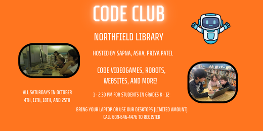 1pm Code Club for Kids Grades K-12th!