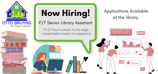 A Meeting of the Board of Trustees of the Otto Bruyns Public Library will be held Thursday, July 14, 2022, at 6:15 p.m. in the Meeting Room of the Otto Bruyns Public Library of Northfield (241 W. Mill Rd., Northfield, NJ, 08225). For those unable to attend in person, the Zoom link for the meeting is: